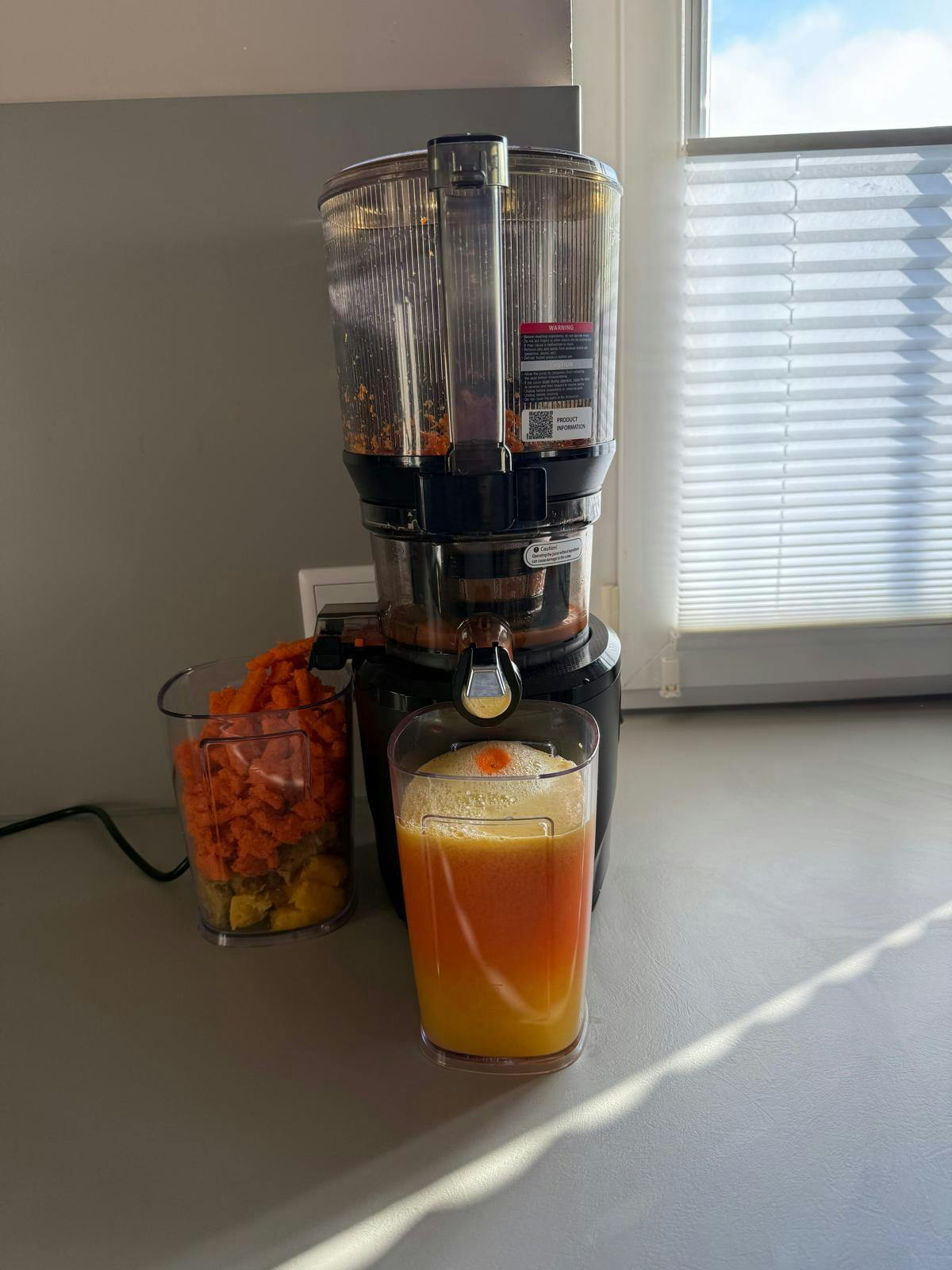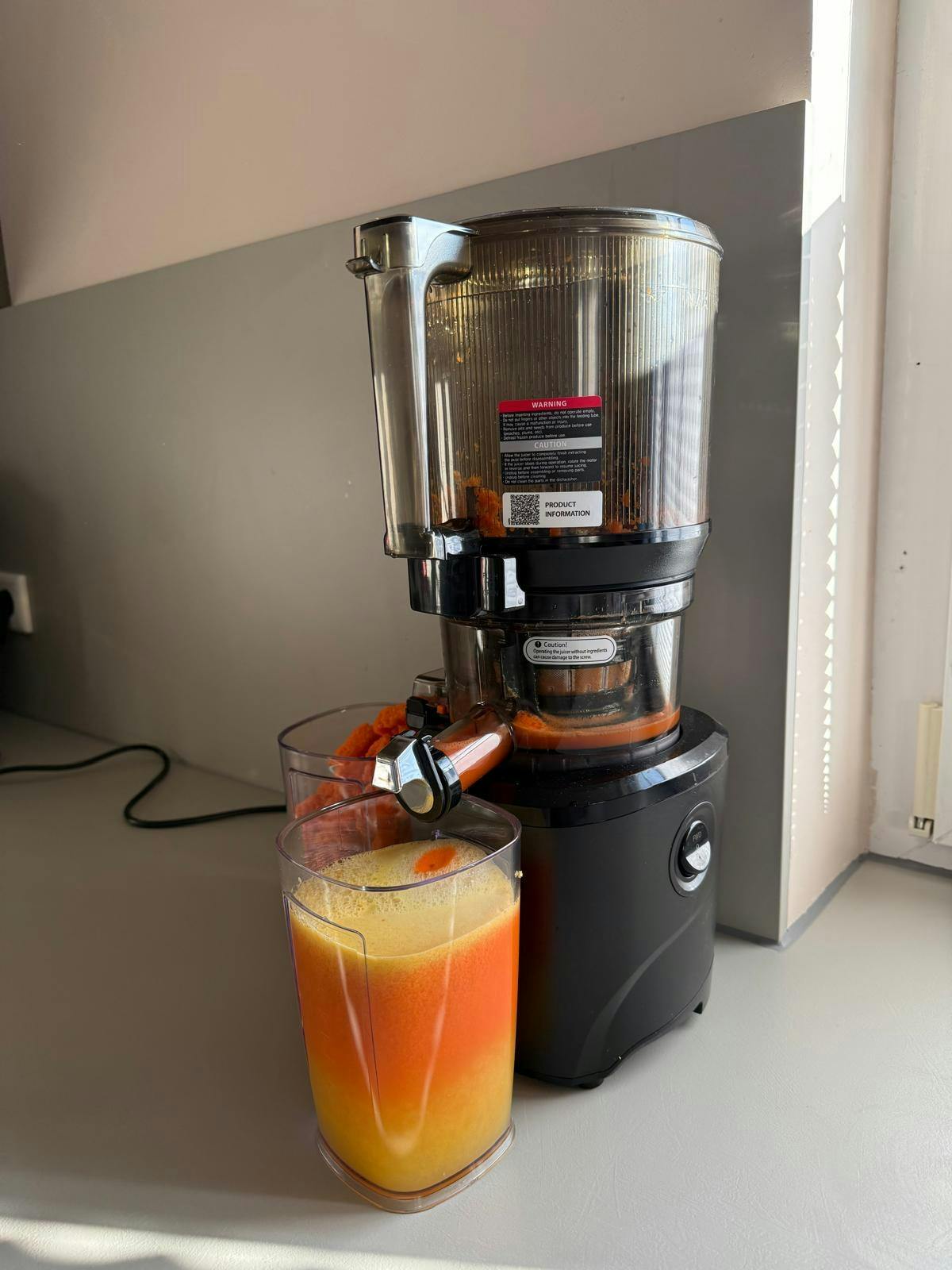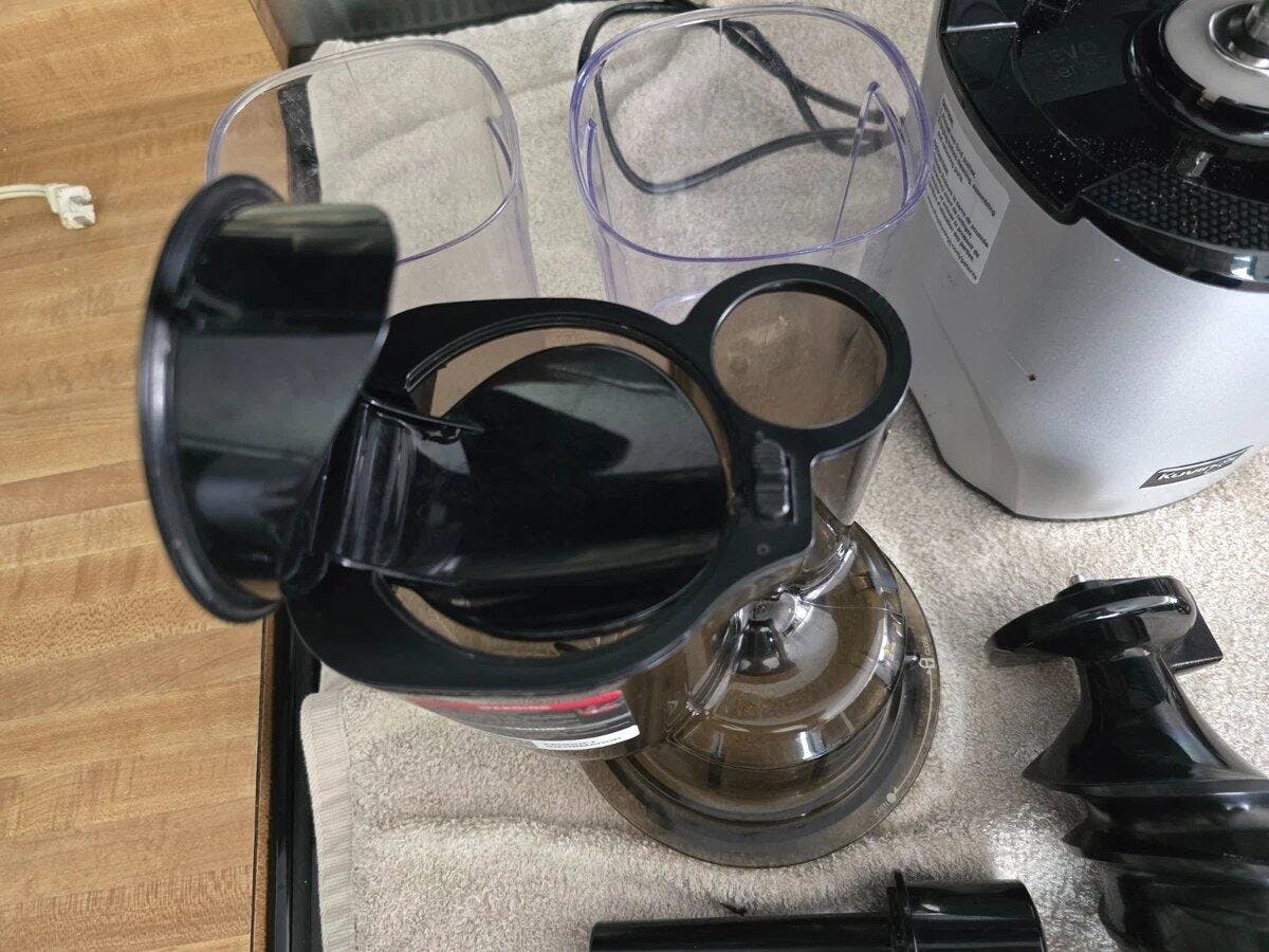 - Place the juice cup or a bowl under the juicer’s spout. Open the smart cap.