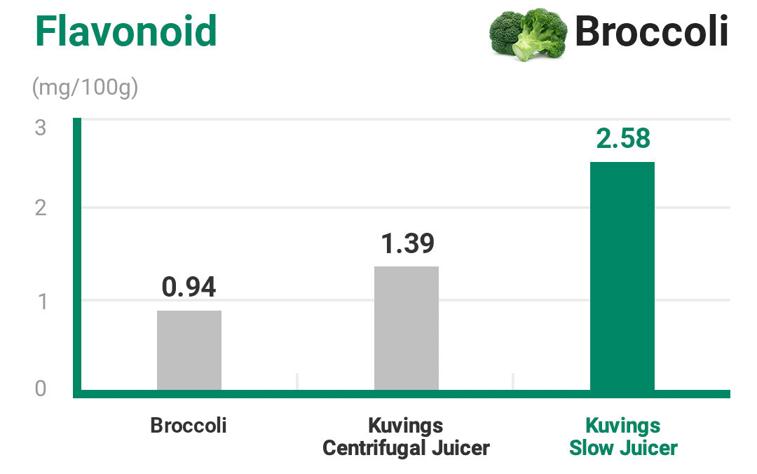 Flavonoid : Juice from a slow juicer contains 1.5 times