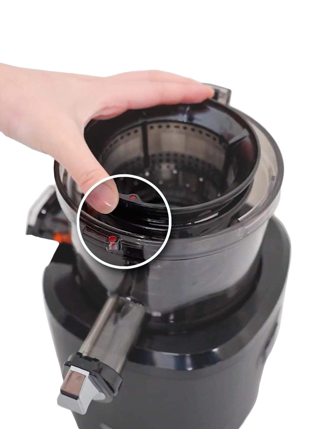 By applying anautomatic cutting mechanism, the double crushing blade of the upper container is designed to automatically cut the entire input material and quickly transfer the cut material to the juicer.